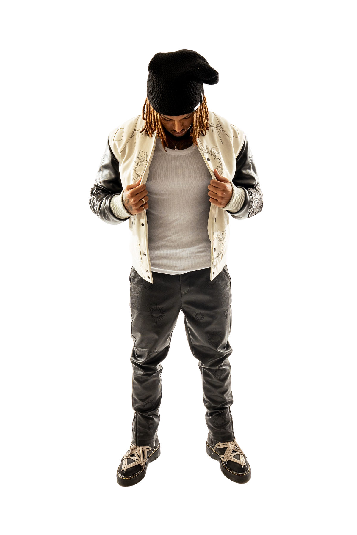 Le Pantalon Arc Majesté puise sa force dans la matière et les symboles qu’il porte. Confectionné en cuir à grain naturel, il conserve sa texture brute et son poids authentique, une présence physique qui affirme identité et caractère.