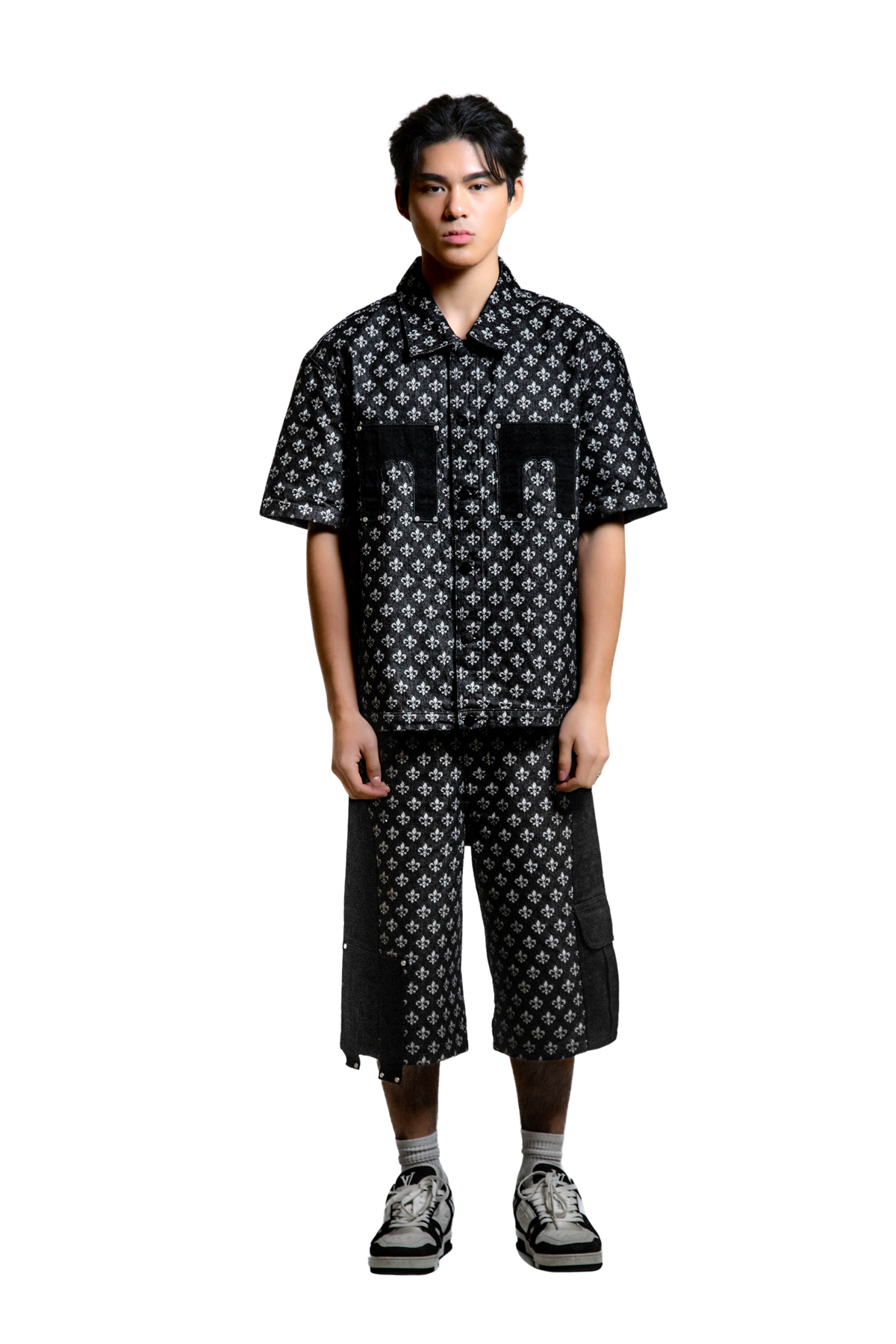 Les panneaux architecturaux de la chemise se reflètent en parfaite symétrie pour une silhouette nette. Le short assorti prolonge le motif Arc sur le côté, dépassant subtilement ses limites pour un mouvement maîtrisé tout en conservant l’équilibre parfait. Les coupes droites assurent un porté confiant et sans effort.